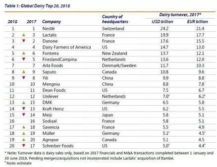 9月4日,FoodEngineering發布了2018全球食品飲料100強年度榜單,上榜乳業公司有20家,和7月荷蘭合作銀行揭曉的2018“全球乳業20強&rdqu...