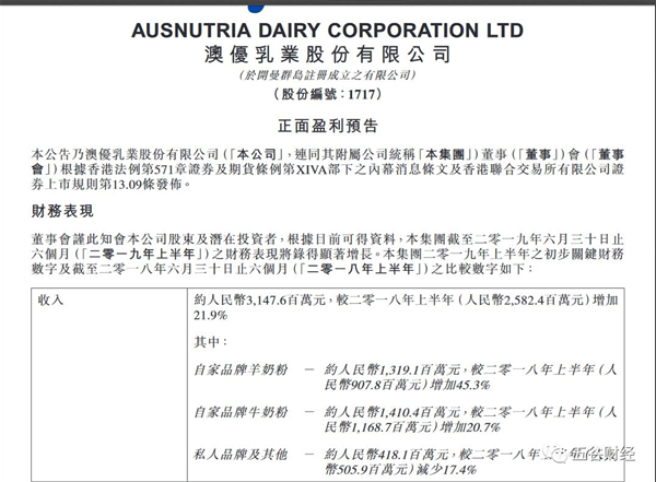 7月31日,澳優(01717.HK)在聯交所發布了正面盈利預告,2019年上半年,預計收入約為31.476億元,相較于2018年上半年25.824億元,增幅在22%左右;經調整...