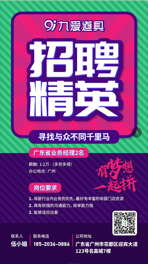 廣州九愛母嬰道具招聘廣東省業務經理