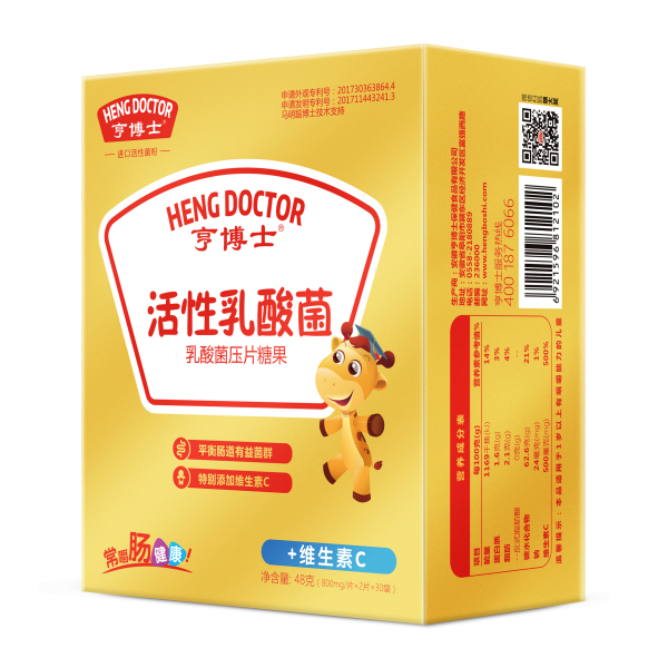 亨博士活性乳酸菌壓片糖果采用國際領先的發酵干燥工藝,充分保證了有益菌的活性,獨創的益生菌片劑形式,經國際先進微囊包埋專利技術處理,特別添加鈣、鐵、維生素C及DHA等,營養豐富,促進寶寶腸道健康。