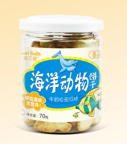 聰又健海洋動物的餅干設計成海洋動物的造型,看起來很好看很有趣,能引起寶寶的進食興趣,讓吃零食成為一種樂趣。同時動物造型的餅干還能鍛煉寶寶對各類動物的認知能力,開發寶寶的智力。