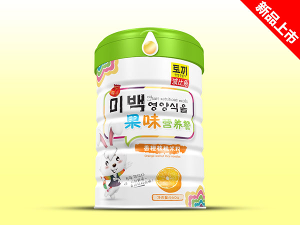 波比兔果味營養餐那-香橙核桃 香橙中含有豐富的檸檬酸、果膠和維生素C,有生津止渴、疏肝理氣的作用,核桃仁中含有多種微量和常量元素,及蛋白質、維生素,有潤燥滑腸的作用,兩者與谷物相結合,補充營養的同時還能防止寶寶便秘。