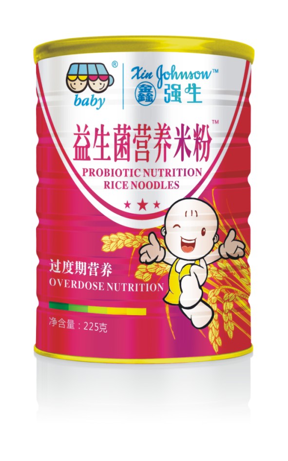 鑫強生益生菌營養米粉過度期營養配方,為寶寶輔食添加初期優選,簡單的成分,精致的營養組成,特別加入的益生菌,可幫助營養成分的消化吸收。