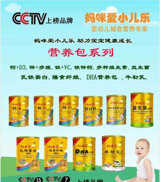 推薦產品:媽咪愛小兒樂營養包 媽咪愛小兒樂營養包 央視廣告品牌,口感好,含量高,種類齊全,在全國多家合作母嬰店上貨熱賣,終端動銷十分火爆,銷量大,口碑高,受到消費者一致認可和喜歡。媽咪愛小兒樂,讓媽媽喜愛!寶寶快樂!
