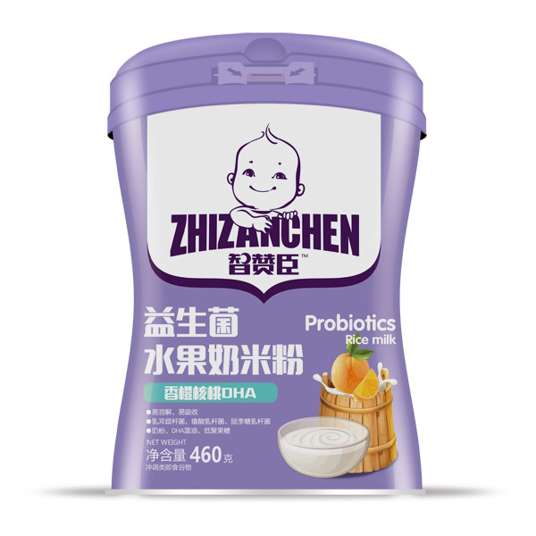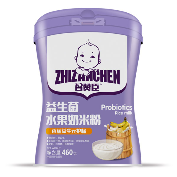 智贊臣益生菌水果奶米粉共有草莓果蔬、蘋果鈣鐵鋅、香橙核桃DHA、香蕉益生元四大配方,含有奶及多種維生素,米粉細膩,奶香濃郁,口味豐富,營養多樣,可按照寶寶喜好搭配其他嬰幼兒輔食食品,隨心搭配,讓寶寶愛上米粉!