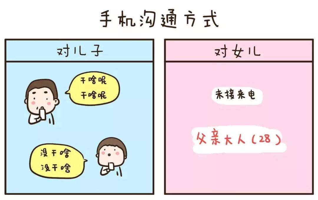看看爸爸和兒子或女兒的聊天記錄,爸爸和兒子的對話通常是字數少,簡單直接,復讀機模式,對方若沒有及時回應就沒有下文了……
