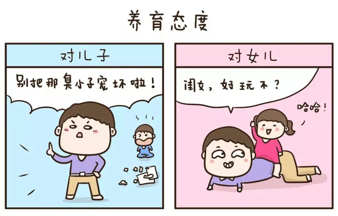 好友Q有兩個女兒一個兒子,說起老公帶孩子那本經,Q笑著說,老公對待兒子和女兒的區別太大了,兒子還不到1歲,便時不時提醒她,千萬別慣著兒子!