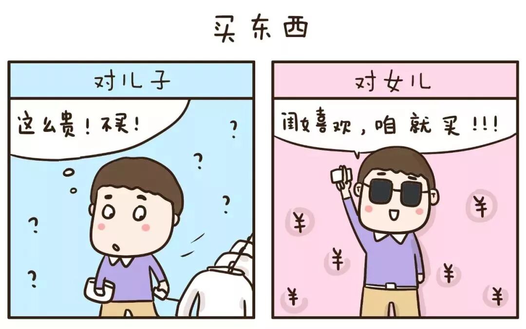給閨女買東西,閨女喜歡啥必須買啥;給兒子買東西,先看看價格……太貴!先不買了!
