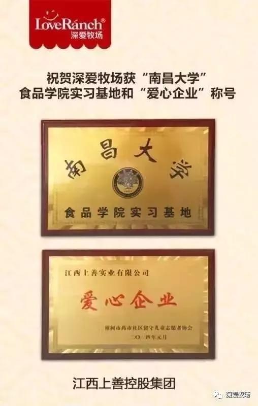 同時,深愛牧場還堅持參與愛心事業,和南昌大學食品工程學院建立了長期的校企合作,品牌的背后,折射出江西上善集團對社會貢獻的不懈努力。 關注深愛牧場