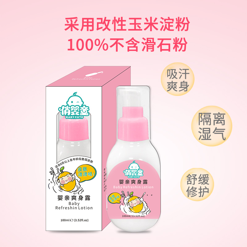俏嬰童嬰親爽身露,精選優質玉米淀粉,增加了一些滋潤的液體成分,配合日本大豆、有機燕麥、人參果等多種植物成分,有效吸收肌膚表面汗液,隔離濕氣;液體爽身粉,不會粉末亂飛,導致寶寶吸入粉塵,誘發感染,還能保持舒適健康,保持肌膚水嫩,是比較好的選擇! |