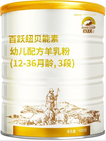 百躍紐貝能素嬰幼兒配方羊乳粉獨有NBNS(營養新均衡理念new balance)營養配方,兩小時快速加工一次罐裝成粉,鮮活好營養。配方特別添加珍貴乳鐵蛋白,有助于提升寶寶免疫力,有助于增強機體造血功能,鐵的吸收利用率達到4-7倍。配方特別添加珍稀opo結構脂,從脂肪酸組成和分布上OPO模仿了母乳脂肪,調節腸胃菌群健康,小分子,營養元素易吸收。減少便秘排便困難,減少營養成分流失,有效提高嬰幼兒鈣質;嬰幼兒成長所需的礦物質和維生素的吸收和能量的攝入,為嬰幼兒生長發育提供充足能量。配方特別添加多倍的益生元FOS+GOS,它能夠刺激有益菌群的增長,降低腸道pH值,調節細菌平衡;促進寶寶健康成長。另外百躍紐貝能素NBNS配方系統還特別添加五種核苷酸,膳食纖維,牛磺酸,膽堿,肌醇等多重營養,提高寶寶記憶力和思維能力,有助眼腦多方位發育,呵護寶寶健康成長!專注好羊乳,親和腸吸收!