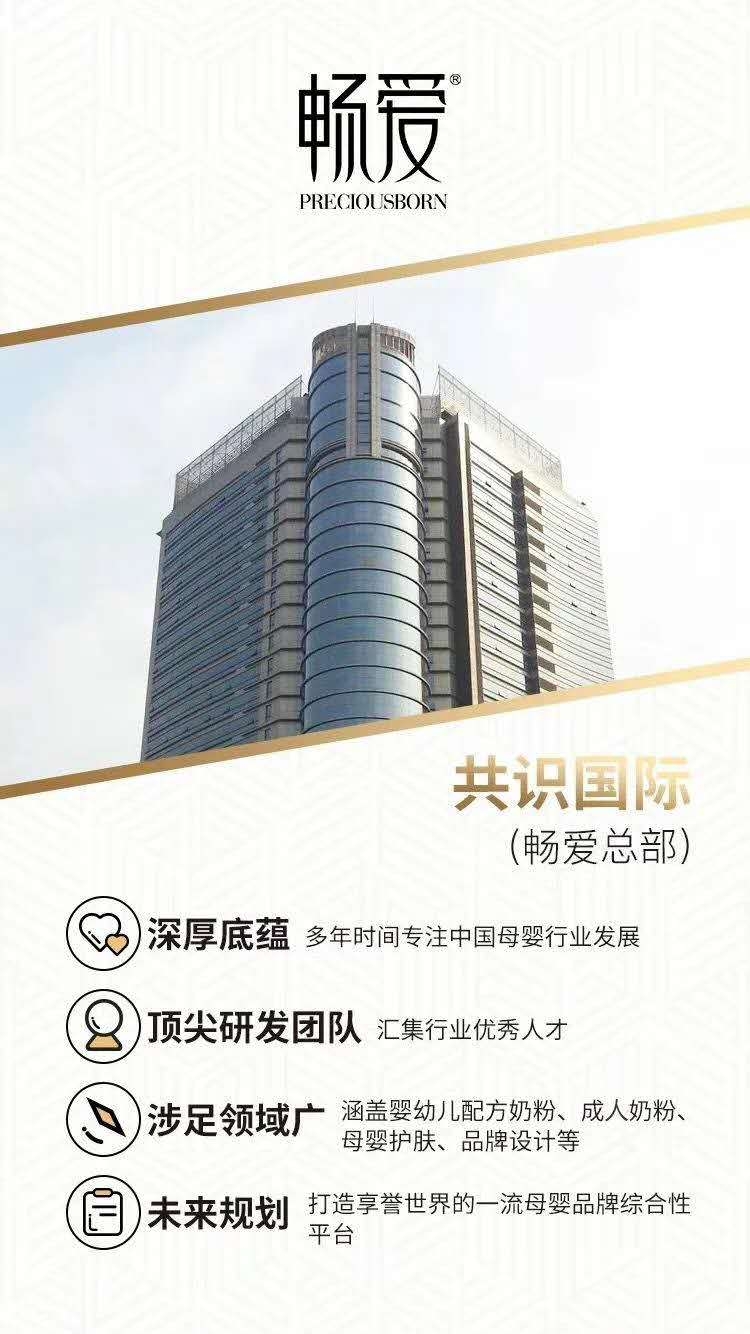 作為暢愛面膜的總部,共識國際是一家富有深厚底蘊的專業化、國際化、綜合型的母嬰品牌塑造平臺,專注中國母嬰行業發展,通過對母嬰行業資源整合優化,形成了以質量與服務為主體,以忠誠、擔當、超越、專業為理念的發展思路,致力于為中國寶寶和寶媽們提供高品質的產品和服務。目前集團涵蓋嬰幼兒配方奶粉、成人奶粉、母嬰護膚、品牌設計、電子商務等多個領域。