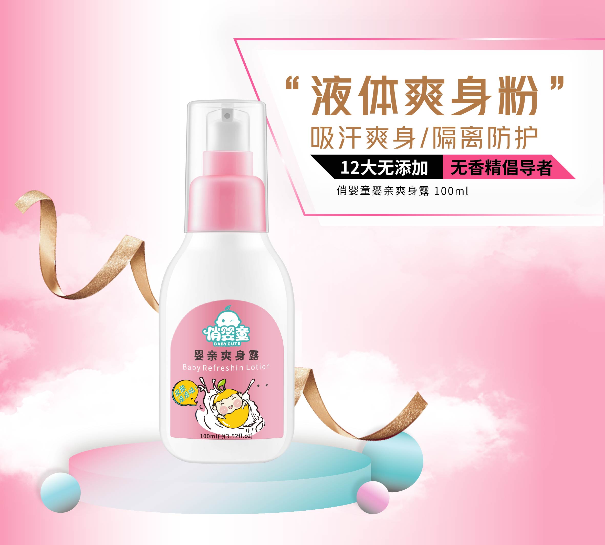 嬰兒爽身粉作為可以吸收寶寶汗液、滑爽皮膚、減少痱子發生的物品,是寶寶春夏季必備的日常生活用品,說到爽身粉,相信大多數家長對爽身粉的印象都是傳統粉狀的,都是用來達到干爽的效果。但是傳統爽身粉,粉塵會被寶寶吸入口鼻,不僅會給寶寶呼吸帶來負擔,也會影響寶寶器官等健康的發育和成長,而俏嬰童嬰親爽身露,無粉塵更安全,不會讓寶寶吸入,凝萃天然植物精髓靈韻,以樸素低調的姿態,默默守護寶寶的初生肌膚。