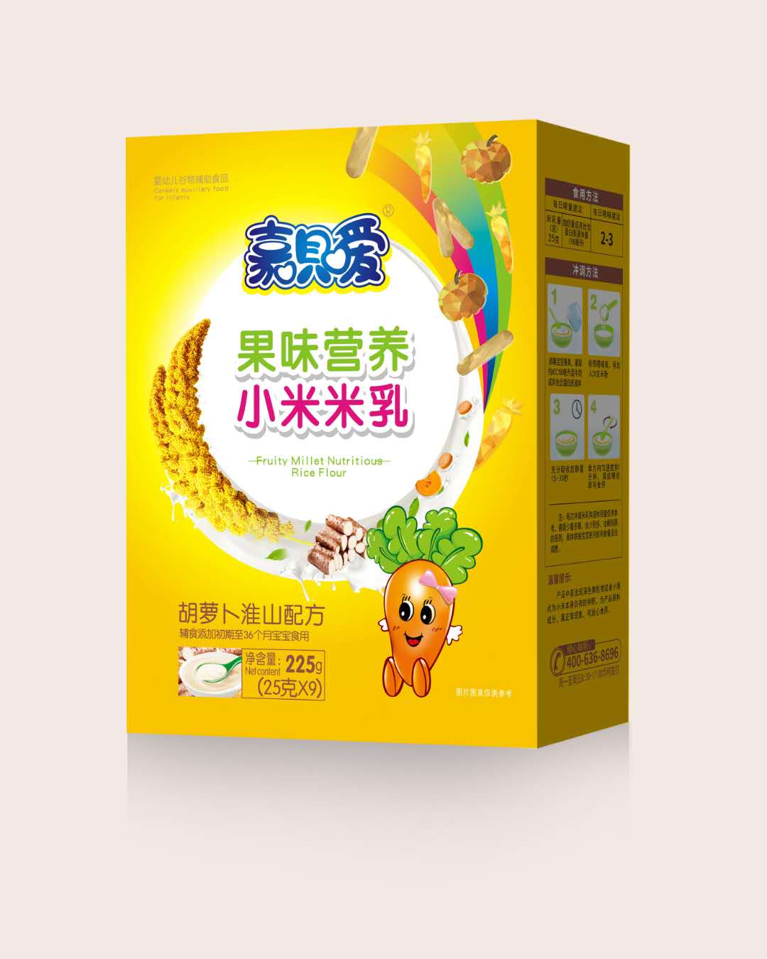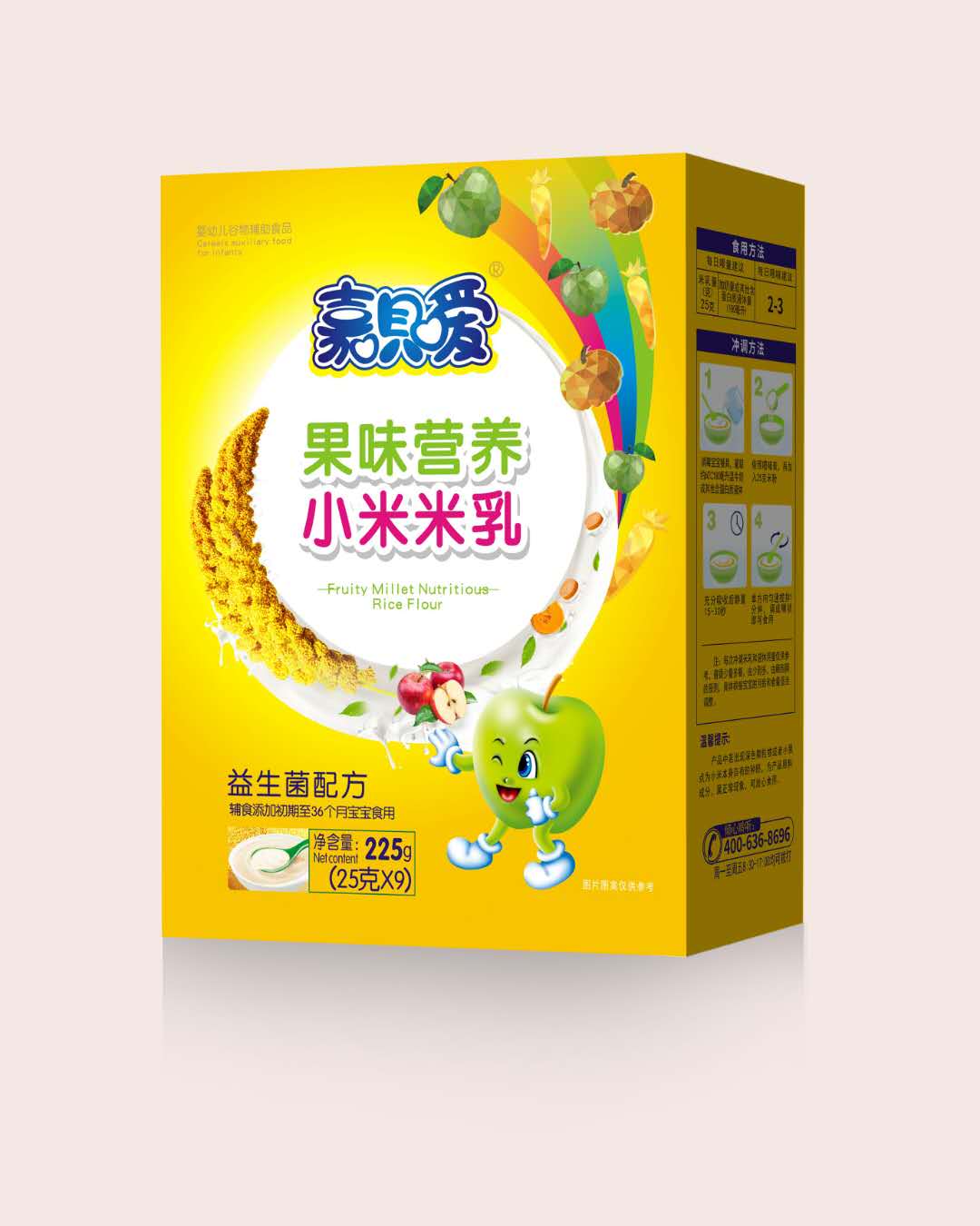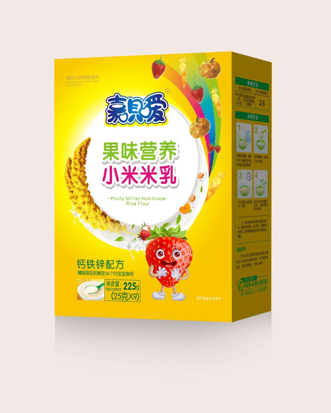 嘉唄噯果味營養小米米乳精選天然種植的優質小米為主要原料,源頭把控品質!同時,更乳清蛋白、益生元、鈣鐵鋅及胡蘿卜淮山四大配方,營養配比更科學,富含成長所需的多種營養元素,更有多種新鮮水果萃取其中,經獨特酶解工藝加工而成,粉質更細膩,易溶解好吸收,不含香精、色素、防腐劑等成分,安全健康,品質過硬,值得信賴! 嘉唄噯果味營養小米米乳,以四大優質配方為千萬寶貝的輔食健康保駕護航,營養豐富,口感多重,寶寶愛吃,媽媽放心,家有寶貝不可錯過哦! 噯果味營養小米米乳”于眾多輔食品類中脫穎而出,深得寶媽們的認可!![]() |