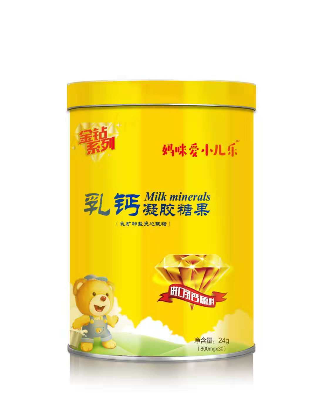 媽咪愛小兒樂乳鈣凝膠糖果主要成分是乳鈣(乳礦物鹽),進口牛乳鈣原料,屬乳清無機鹽濃縮物,從牛奶中提取,含有30%的可溶性鈣,在這30%種又有30%的離子性鈣、60%的檸檬酸鈣、10%的碳酸鈣。相比較其他鈣元素,刺激小,鈣磷比協調、天然處在CPP,容易被人體吸收。