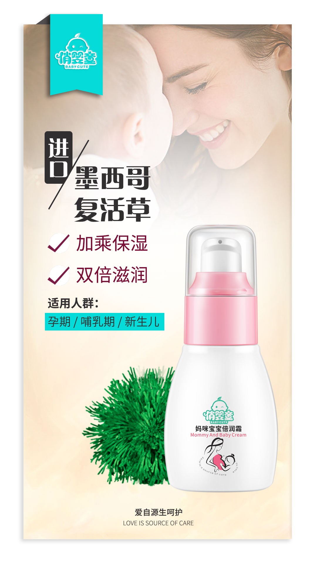 俏嬰童媽咪寶寶倍潤霜蘊含有益于媽媽與寶寶肌膚的營養成分,特別添加復活草,深層保濕,雙重呵護干燥肌膚,溫和維護肌膚屏障,修復干紅和皴裂肌膚,令肌膚水潤又水嫩。 |