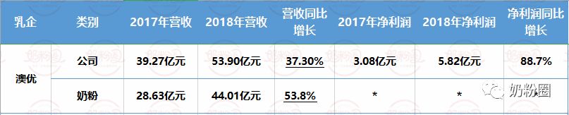 3月18日晚,澳優發布2018年業績公告顯示,2018年澳優銷售額53.90億元,較去年39.27億元同比增長37.3%,凈利潤5.82億元較去年3.08億元同比增長88.7%。其中,自有品牌奶粉銷售44.01億元,較去年增長約53.8%,收入破紀錄。此外,嬰幼兒配方牛奶粉銷售23.68億元,同比增長約49.6%。 值得一提的是,佳貝艾特羊奶粉銷售20.33億元,同比增長約58.9%。進口數據顯示,2018年佳貝艾特約占嬰幼兒配方羊奶粉總進口量的62.5%,連續5年穩居中國進口嬰幼兒配方羊奶粉榜首,中國境內銷售額17.73億元,同比增長64.4%。