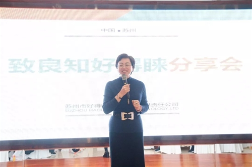 中午,優秀客戶陸續應邀來到鎮江會場。下午1點30分,會議正式開始,由湯董事長發表會議主旨演講,并宣布她給參會的優秀客戶帶來了兩個方面的福利:一是感恩回饋活動;二是致良知致幸福。