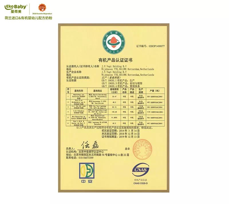 國家市場監督管理總局認證認可技術中心負責中國有機認證的監管,2018年11月份,中心派出的有機檢查審核員飛赴荷蘭,對愛荷美的有機牧場開展了為期10天的有機標準檢查。