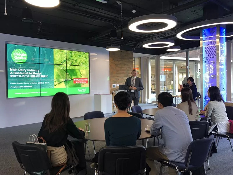 啟賦會員聽取愛爾蘭食品局國際市場總監的介紹 9月4日,啟賦帶會員媽媽們前往愛爾蘭食品局,了解愛爾蘭乳業的生產鏈以及啟賦的質量管理體系。作為愛爾蘭的官方機構,愛爾蘭食品局國際市場總監帕德里克布倫南先生向媽媽們介紹了愛爾蘭乳業的安全可追溯的管理機制、超高的農場機械化和自動化程度、嚴格的牛奶品質檢測及運輸管理體系。在現場講解的過程中,食品局發言人對啟賦表示高度贊賞,“啟賦臻選愛爾蘭珍貴奶源,作為一個天然的、高品質的食品、飲品及原料出產國,愛爾蘭奶源在歐洲乃至全球都是最好的奶源之一;菔蠣I養品在愛爾蘭西部的阿斯基頓建立了自己的工廠以及全球研發中心,始終貫徹高標準的生產要求,尤其注重研發。工廠歷史悠久,擁有現代化的工藝流程和管理水平;菔蠣I養品對創新科技、卓越品質與和諧生態的同等追求,與愛爾蘭乳業的理念高度一致,源于愛爾蘭的啟賦品牌也代表了愛爾蘭乳業的最高品質。”
