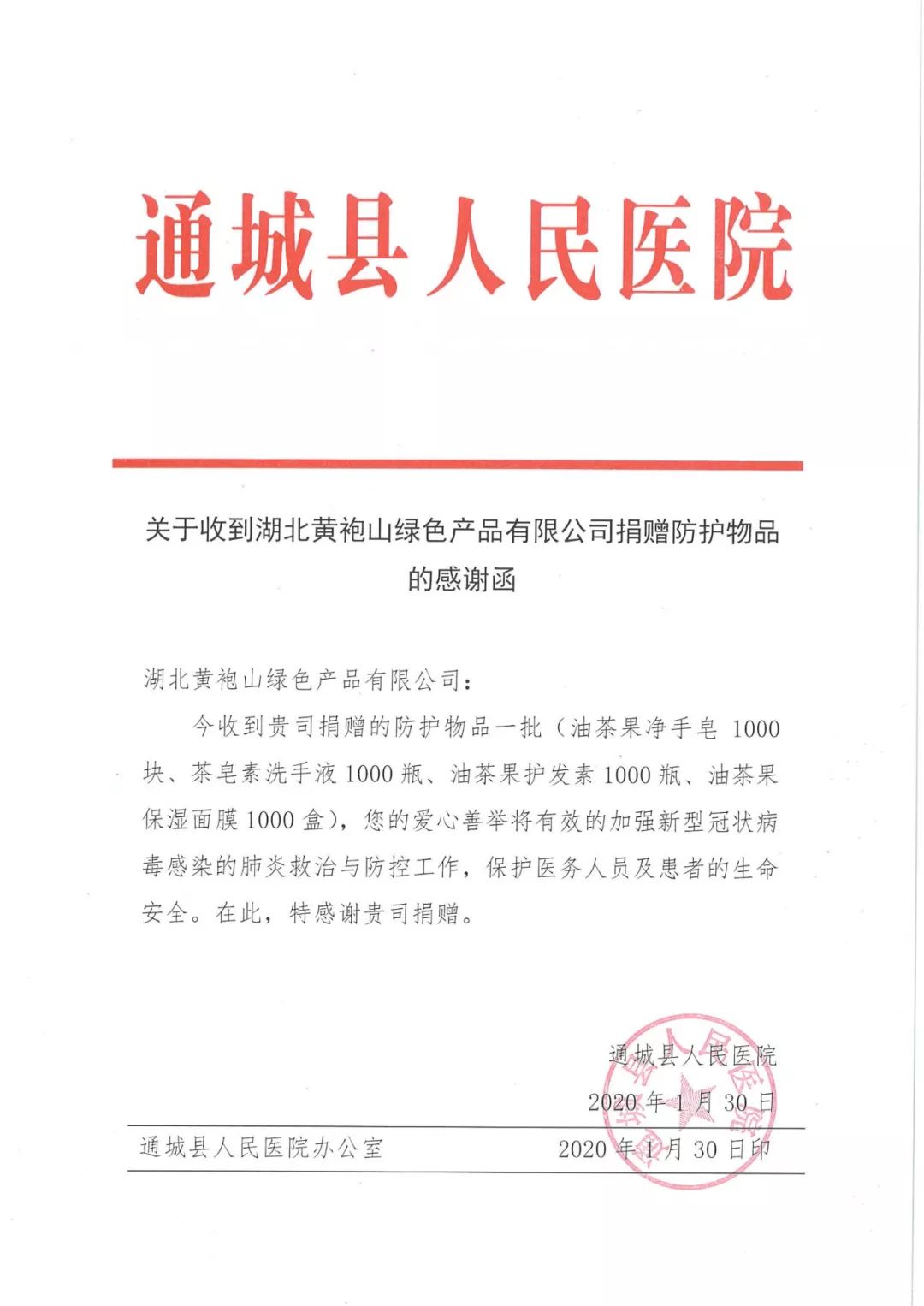 近日,全國多個省份發生了由新型冠狀病毒感染的肺炎疫情,為了助力抗擊疫情,湖北黃袍山綠色產品有限公司為通城縣公安局、縣疫情防控應急指揮部、縣人民醫院捐贈了資源,為醫護人員與患者的健康安全保駕護航。