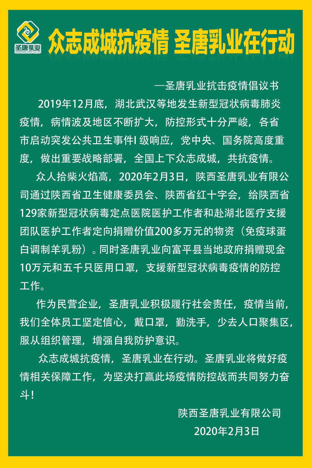 疫情就是命令,守護就是責任。呵護人類健康,助力加油疫情防控阻擊戰,圣唐乳業響應號召,快速反應,積極行動。