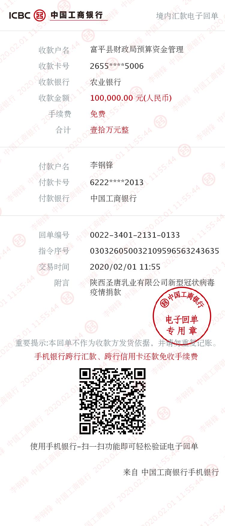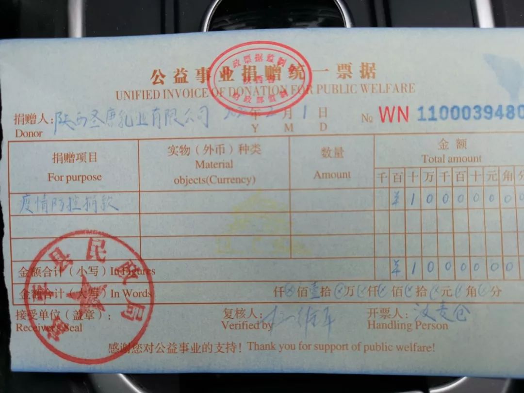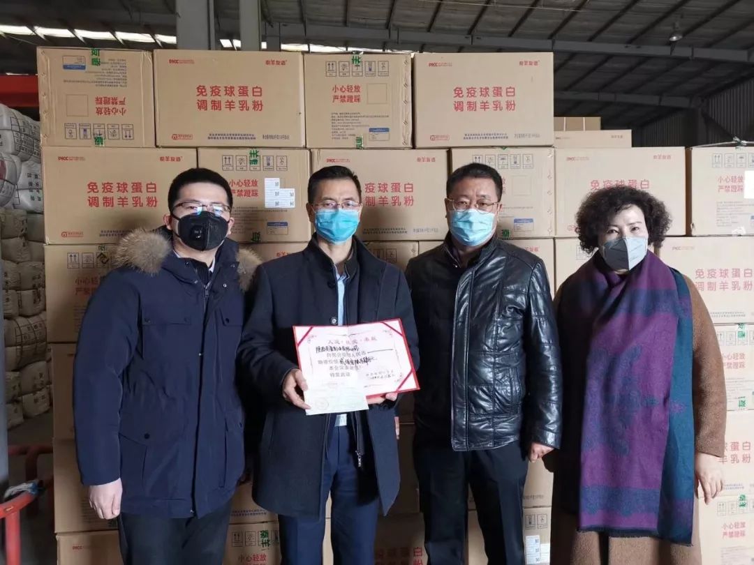 2月3日,在公司董事長徐長城、總裁武壯田的安排下,常務副總經理李鋼鋒通過和陜西省衛生健康委員會及陜西省紅十字會聯系溝通,捐贈價值200多萬元物資(免疫球蛋白羊乳粉),定向捐贈給陜西129家新型冠狀病毒定點醫院醫護工作者和赴湖北醫療支援團隊醫護工作者。