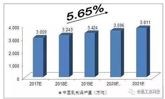 綜合以上因素,據2017年中國乳制品行業現狀及發展趨勢分析預計,2017年我國乳制品產量將達到3,059萬噸,未來五年(2017-2021)年均復合增長率約為5.65%,2021年產量將達到3,811萬噸。 文章來源:國家乳業工程技術研究中心,部分圖片來源于網絡