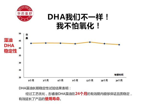 3、強抗氧化,穩定性強:由于DHA分子富含不飽和雙鍵,狀態十分不穩定,受到氧氣、溫度和光線等因素容易被氧化變質。彤?礑HA工藝優化,穩定性強,品質過硬,給力護成長;
