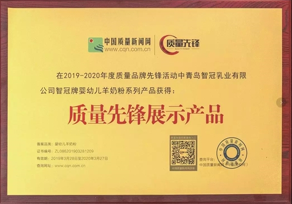 多年以來,智冠乳業堅守本心,立足有機,品質為本,不斷創新,取得了一項又一項的榮譽。在2019年更是被國家市場監督管理總局主管的中國質量新聞網選入《質量先鋒》品牌檔案!這是對智冠羊奶粉品牌和質量的肯定。