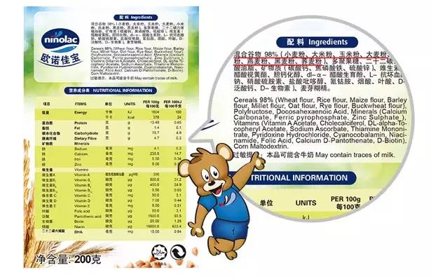 歐諾佳寶(Ninolac)國內同步銷售貨架陳列 生物酶切技術 歐諾佳寶(Ninolac)經獨特生物酶切技術制成,為半水解谷物米粉。 備注:于40℃溫水或牛奶中逐漸加入歐諾佳寶米粉,輕輕攪拌幾下,即可沖調完畢。 活力均衡配方 1.強化19種重要營養元素