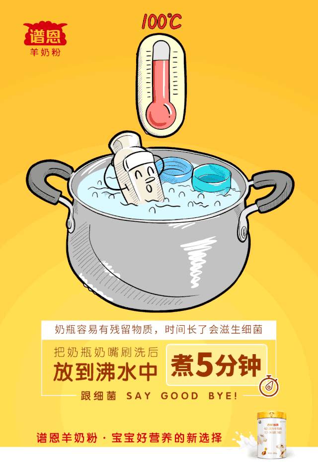 通過簡單地市場走訪發現: 、倌谭蹧_調水溫要求在40-55℃之間的奶粉品牌相對較多; ②奶粉沖調水溫要求最高不超過70℃; 、垡灿袠O少沖調水溫要求在40℃以下的; 由于40℃和70℃分別介于低溫和高溫的臨界,爭議最大。今天小恩帶大家進一步探討,看看采用這兩種沖調水溫是何道理~ 說法一: 70℃更安全,但費時 WHO(世界衛生組織)和聯合國糧農組織(FAO)在2007年出版的《安全制備、貯存和操作嬰兒配方奶粉:指導原則》中建議嬰幼兒配方奶粉的沖調水溫應該為70℃,這樣的溫度可以降低阪崎桿菌及沙門氏菌對寶寶健康的威脅。 WHO/FAO在當時在指導中認為,嬰幼兒配方奶粉不是無菌產品,可能含有引起疾病的病原體,通過正確的配制和操作可以降低致病風險。 這就是用70℃度白開水沖調奶粉的來由。這樣的溫度的確會破壞掉一部分不耐高溫的營養素,如降低蛋白活性,產生一些蛋白質絮狀物沉淀,破環一部分維生素C等。但是這樣的損失只是少部分,用70℃度沖調也是可行的。 阪崎桿菌對提抗力差的嬰幼兒群體威脅極大,所以不足2個月的嬰兒、早產兒/低體重兒及免疫力差的寶寶,可以用70℃的水溫來沖調配方奶粉,只是沖調好后的奶粉需要更長的冷卻時間。 說法二: 40℃營養活性高,沖調更快捷 多數奶粉的沖調建議都低于70℃,普遍為40-55℃之間,甚至更低。例如譜恩綿羊奶粉的建議沖調溫度就為45-55℃。其目的之一就是最大程度保護奶粉中各營養物質的活性,此外,奶粉在這個溫度區間更易溶解,并且沖調之后能夠很快達到寶寶入口的適宜溫度。 盡管阪崎桿菌對寶寶健康威脅很大,為什么這些奶粉的建議沖調溫度遠遠低于70℃呢?其實為了最大限度地保護嬰兒健康,大部分國家都在嬰幼兒配方奶粉標準中嚴格控制阪崎腸桿菌。 國際食品法典委員會(CAC)公布了《嬰幼兒配方奶粉的衛生操作規范》,對即食食品中的單增李斯特菌和嬰兒配方奶粉(適用于6個月以下嬰兒的配方奶粉)中的阪崎腸桿菌進行了限量規定。 2010年,歐盟委員會(EC)發布關于食品微生物標準2073/2005的修訂條例No.365/2010,規定針對6個月以下嬰兒奶粉進行抽樣時,每批次奶粉共抽檢30個樣品,每個樣品不超過10克,其中阪崎腸桿菌的檢出量應為0。 美國食品藥品管理局(FDA)頒布的21CFR106.55中要求針對6個月以下嬰兒奶粉進行抽樣時,每批次奶粉共抽檢30個樣品,每個樣品不超過10克,其中腸桿菌屬(包含阪崎腸桿菌)應為“未檢出”。 我國國家標準《GB 10765-2010 食品安全國家標準 嬰兒配方食品》要求,針對6個月以下的嬰兒配方奶粉進行抽樣時,每批次奶粉共抽檢3個樣品,每個樣品為100克,并且不得檢出阪崎腸桿菌。 也就是說在WHO/FAO提出用70℃水溫沖調奶粉,來降低嬰幼兒感染病原體后,各國還相繼頒發了嚴格的衛生標準,來限制致病菌在配方奶粉中的限量,而且均為零檢出。因此之后對使用高溫沖調奶粉的要求也自然降低。 一般正常銷售的配方奶粉,質量安全都有保障,用40℃左右的水溫沖調也可放心。由于每種奶粉的配方有差異,溶解性各不相同,參考奶粉包裝的建議最好。 譜恩奶粉沖調攻略 1、把奶瓶奶嘴刷洗后放到沸水中煮5分鐘