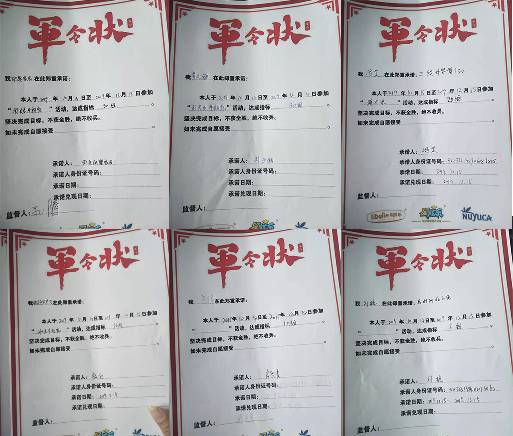 從一開始大家都明白,這不是一個花拳繡腿的培訓,這是一次真刀真槍的演習,最后當然是狹路相逢、爭取榮譽。一份份信誓旦旦的軍令狀就是大家對自己的承諾,也是對今天所有人員的交代,是的,勢必達成,二個月達成800盒利貝樂牛初乳粉實戰動銷。技能強化,動銷為王,為榮譽而戰!