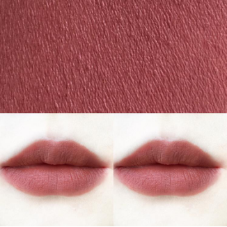 唇膏是絲絨質感的,但是啞而不干涂起來灰常順滑,妝效是完全啞光的霧面質感!而且顏色的飽和度也很不錯,一筆下去就闊以完全遮蓋住唇色啦~