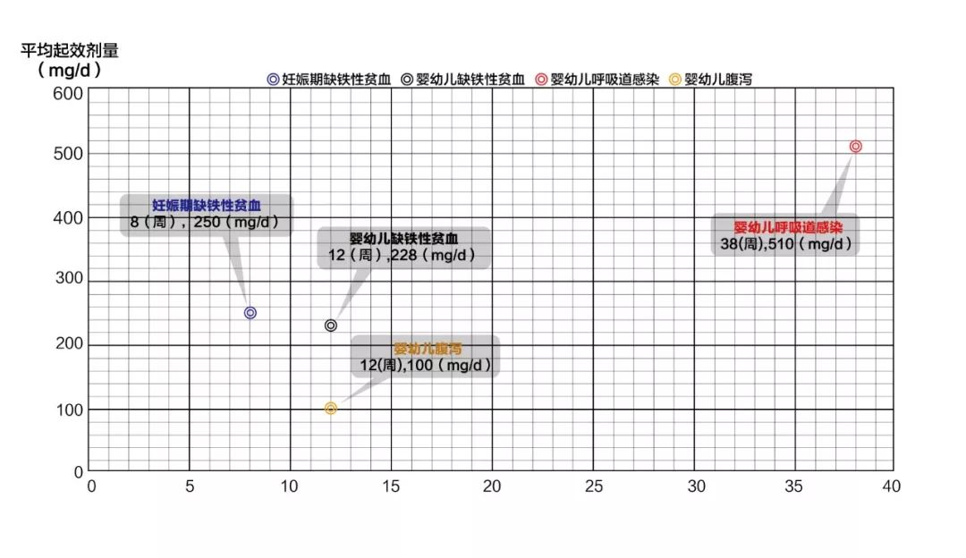 更有研究證實,針對腹瀉,乳鐵蛋白的平均起效劑量正是100mg/d,起效周期在12周(3個月)。其他的癥狀如缺鐵型貧血、呼吸道感染等,則需要更高的起效劑量和食用周期。