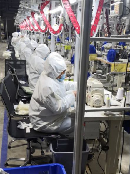 。榱吮WC防護服的生產環境符合要求,艾萊依改造的防護服生產車間)