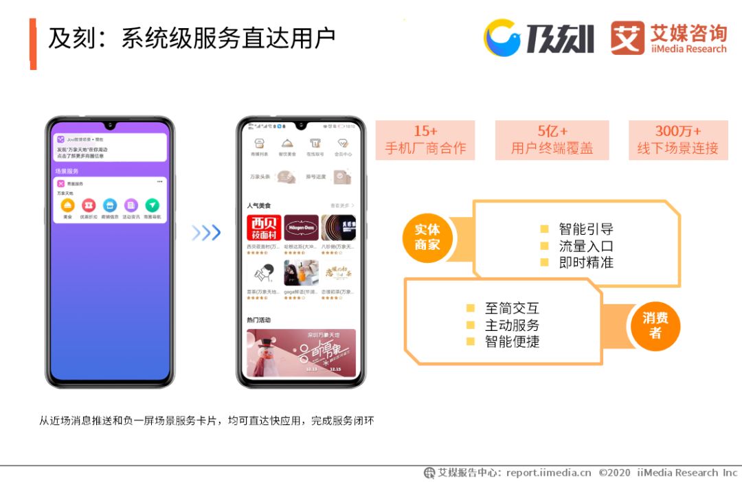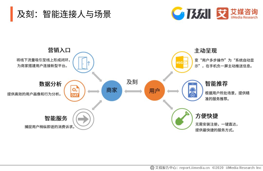 及刻實現了手機用戶與線下場景的即時連接,在為用戶提供智能、便捷服務的同時,也為商家提供了觸達用戶的渠道。艾媒咨詢分析師認為,及刻具有交互至簡、使用輕便等特點,在智慧場景服務整合及分發方面具有獨到優勢。