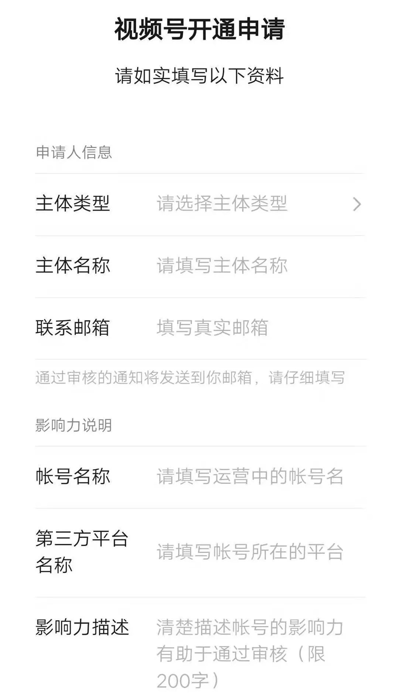 不過,想要申請「視頻號」也是有著條件的!前面的申請人信息不用我多說,最重要的還是要填寫第三方運營中的賬號、名稱和影響力證明等。
