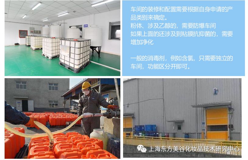 3、委托生產企業注意事項:營業執照經營范圍、代加工企業資質、上市產品提前準備時間(4-6個月) 4、產品宣稱應有理化和毒理試驗檢驗依據。 二、裝備工藝 1、獨立的廠房: 根據所申請的許可證的產品劑型不同需要建立不同廠房,比如:消毒粉需要防爆車間;酒精抑菌啫喱需要防爆凈化車間。生產車間凈化各地要求有些不一,上海東方美谷化妝品技術研究中心依上海地區為例:用于粘膜的產品10萬級、用于皮膚的產品30萬級、用于物體表面消毒一般潔凈廠房即可。