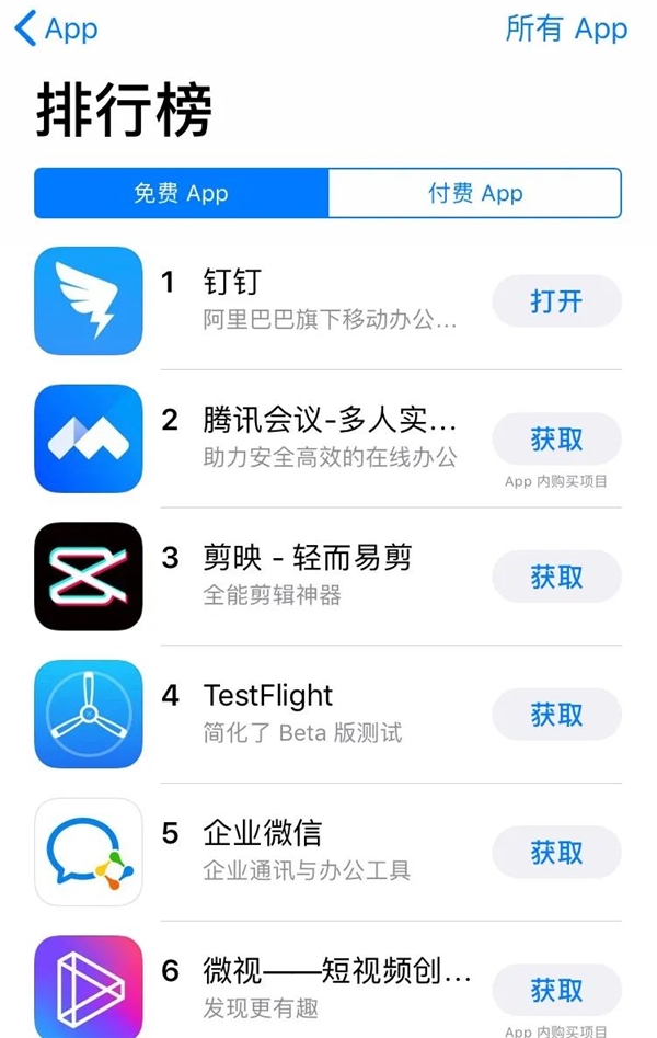 在這樣巨大的需求缺口下,也為遠程辦公產品提供了拉新的機會。無論是限時免費,還是緊急擴容、提升基礎功能,除了在面對重大社會突發事件時,承擔作為商業力量的公共責任外,事實上企業們還達到了快速搶占市場份額的目的。復工后的較長一段時間內,蘋果app商店的免費軟件下載量排行榜上,釘釘、騰訊會議、企業微信等排名持續在前。