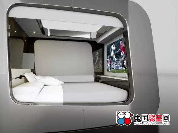 2、從外形上看,這張智能床設計的相當有未來感和科技感,就像一個小私密空間。在床頭有三個觸控傳感器,你可以對其進行編程控制,并集成到整個控制平臺里, 對其他智能設備實現控制。此外,還內置了高清屏幕和投影儀,躺在床上也能感受到影院級別的享受。無線wifi、光線控制系統、音響等功能一樣不少,可通過手機進行操控。
