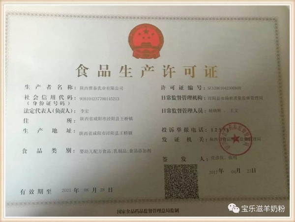 回顧歷史首批通過生產許可 2013年,國家食品藥品監督管理總局征集社會各界意見8970多條,制定了《嬰幼兒配方乳粉生產許可審查細則(2013年版)》,對嬰幼兒配方乳粉實行參照藥品管理辦法進行管理。根據新規的嚴格程度,能通過審核的企業是真正能生產安全、健康、放心的奶粉的企業。 2014年4月13日,陜西雅泰乳業在全國128家嬰幼兒奶粉生產企業中脫穎而出,雅泰乳業一次性順利通過嬰幼兒配方乳粉生產許可證換證審核,首批獲得生產許可證書! 17年再次首批通過生產許可 近日,國家食品藥品監督管理總局對雅泰乳業生產基地、嬰幼兒配方乳粉生產許可證相關細則進行了審核,經過專家組嚴格、細致、認真的核查,雅泰乳業順利通過“2017版嬰幼兒配方奶粉生產許可證“現場審核,于4月27日首批獲得生產許可證書。 雅泰乳業順利通過此次“史上最嚴”審核,這意味著國家對雅泰乳業品質最權威的肯定和認可。