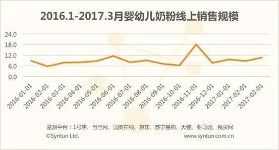 | 2017年1季度線上嬰幼兒奶粉銷售趨勢分析 |
