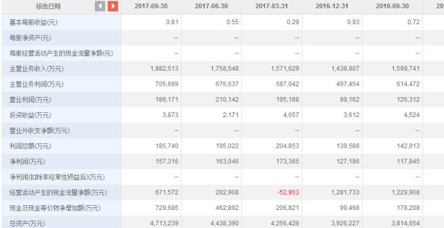 伊利今年第三季度的業績很好的延續了其今年上半年的增長勢頭。本季度其營收約188億元,凈利潤15.7億。營業總收入同比增長率18%,凈利潤同比增長率33%。 上半年,伊利安慕希增速在30%以上,金典增長20%左右,奶粉業務增速超20%。今年高端產品銷售額占比超過總營收的50%。奶粉新政后,伊利未來三年新景氣周期已經開啟,行業份額持續加速,此輪乳業復蘇的重要支撐動力來自于三四線市場,伊利當前渠道已大面積滲透至鄉鎮一級,繼續保持領先。 貝因美 貝因美第三季度營收約7億元,凈利潤約-1500萬。營業總收入同比增長率53.83%,凈利潤同比增長率92.24%。
