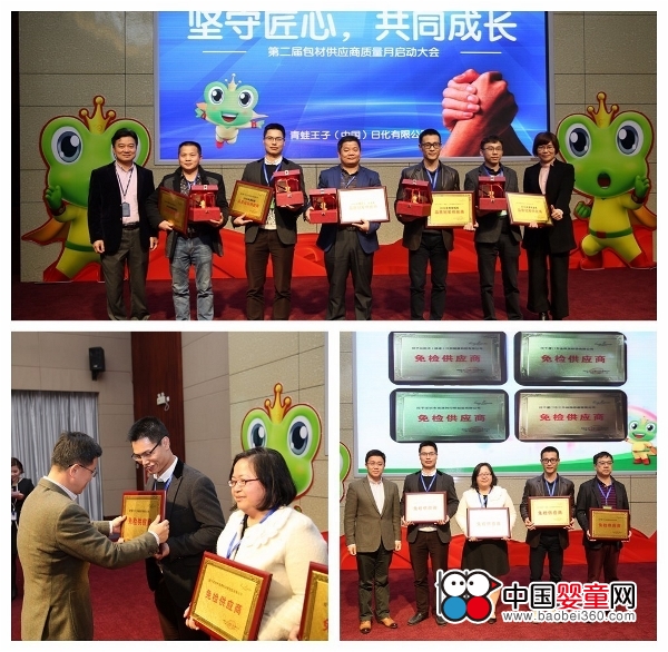 同時為了感謝供應商朋友對青蛙王子持續發展做出的貢獻,會上還表彰了2016年供應商“質量月”活動各品類冠軍供應商,及為2016年新確立的免檢供應商頒發了授牌。