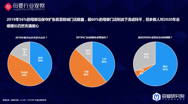 母嬰研究院近期的調研報告顯示,2019年56%的母嬰店保守擴張甚至精減門店數量,超60%的母嬰門店利潤下滑或持平,但多數人對2020年業績增長仍然充滿信心。
