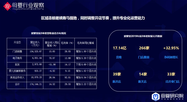 再看線下門店的一些玩法,比如說直營為主的,加盟為主的,還有母嬰B2B平臺的,實際上每一家做母嬰連鎖的或多或少都在加盟,只是戰略意義和定位不同,組成比例不同。其中,直營做規模還是值得商榷的事情,但是無論哪一種模式你做到極致,結果不會差,比如輕門店重供應鏈的愛嬰島,今年的利潤很好。