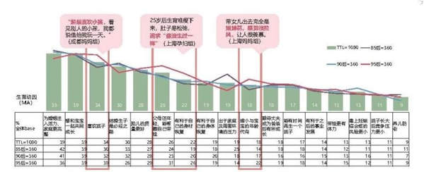 追求自我、舒適第一是他們的特點,因此95后媽媽傾向于主動早生。88%的95后媽媽有計劃地主動早生,因為恢復快、有人幫忙、更輕松。有95后媽媽表示“早生有利于身體恢復”,因為25歲以后生育難瘦下來;有媽媽希望縮小與寶寶的年齡代溝,還有的媽媽覺得趁著長輩年輕,早生可以讓父母幫忙帶孩子。