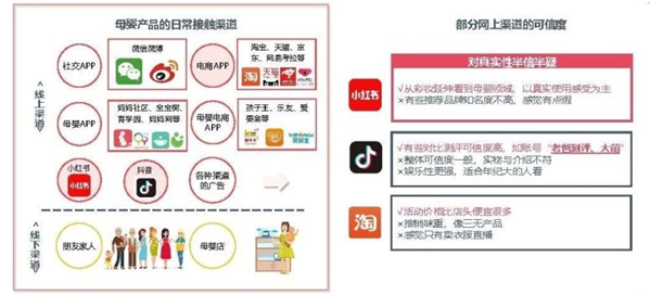 95后媽媽獲取育兒理念的渠道比85后、90后媽媽更加廣泛,且大多為日常碎片化的補充。他們日常接觸到母嬰產品的渠道除了親朋好友的推薦和母嬰店外,線上渠道更為廣泛。常見的社交APP、電商平臺、母嬰APP、母嬰垂直電商、社交電商等多平臺多渠道接觸。