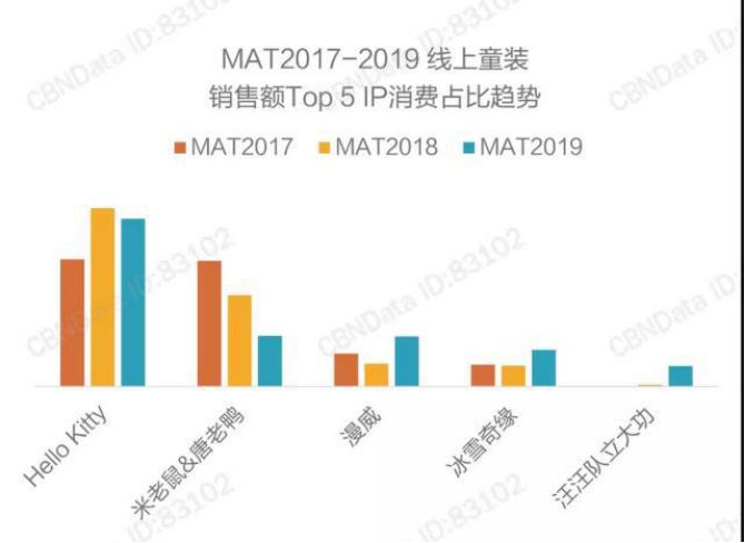 來源:艾瑞咨詢 由此可以看出,童裝用品類的消費采購者角色主要是大人。但是使用者與采購者的分離也必須正視孩子的使用感受,事實也證明童裝消費中,除了父母,孩子的參與度加重,正在影響消費決策。 根據此前極致傳媒的調研顯示:調研的1200多位兒童及其背后的家長在中國市場的媒介行為,也對比了全球42個國家幾萬名兒童的數據,我們發現,全球超過八成的家長都認為自己的孩子影響了他們所有品類購買的決策。 既然消費市場中的消費主體有所變化,童裝品牌又該如何轉變產品和營銷方式,突破增長? 從產品端來看,“小大人”在參與購買決策時對“性價比”的考慮程度比較低,也就是對價格的敏感度較低。所以能俘獲“小大人”的切入點在于顏值。 未來一定是顏值經濟時代,不僅90后新生代媽媽對產品顏值要求甚高,10后小大人的要求更高。他們在新環境下受父母審美影響,再加上外界信息量巨大,在早期就建立了一套自己的“審美觀”,對產品顏值提出更高要求。 童裝屬于母嬰用品中為數不多的非標品類,在產品的樣式、布料花紋、圖案等的“可塑性”很強,這也是童裝品牌在顏值經濟時代的一大優勢。 另外“酒香也怕巷子深”,優質的高顏值產品需要營銷手段的加持。目前IP跨界聯名已經屢見不鮮,但是選擇什么樣的IP形象是值得童裝品牌深思熟慮的。 童裝跨界合作,聯合時尚IP是常見玩法。根據CBNData消費大數據顯示:2019年線上童裝銷售額最高的童裝IP依次為Hello Kitty、漫威、米老鼠&唐老鴨、冰雪奇緣、汪汪隊立大功。值得注意的是米老鼠&唐老鴨首次被漫威系列超越,占比逐年下降;汪汪隊立大功作為一個新興IP,消費占比猛增,是一潛力IP;Hello Kitty興盛幾十年,即使2019年有下降趨勢,但是依然遙遙領先其他IP。